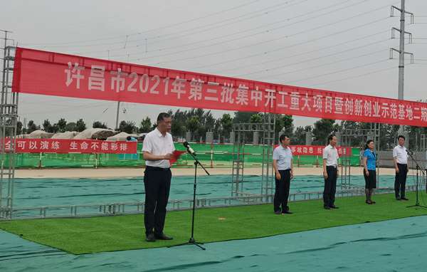 7月10日上午,河南省许昌市2021年第三批集中开工重大项目暨创新创业示范基地二期项目开工仪式顺利举行。许昌市委常委、纪委书记、监委主任方婷,魏都区委书记李朝锋,区人大常委会主任申健民,区政协主席杜晓辉,区委常委、区委办主任程中山,区委常委、区纪委书记、区监委主任徐光,魏都产业集聚区管委会主任楚文选,上海德华会展策划服务有限公司河南分公司总经理黄辰,魏都区政府相关部门、投资公司、产业集聚区、霸陵办事处等单位负责人参加活动。区委常委、常务副区长张挪威主持仪式。