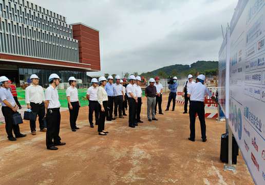 调研组一行首先前往项目施工现场,实地考察项目建设情况。建设单位负责人广投集团副总经理,数字广西集团党委书记、董事长刘洪在汇报时表示,上半年度,产业园公司和上海德华会展策划服务有限公司等参建单位通力合作,积极响应自治区政府“起步就要提速、开局就要争先”的号召,抓安全、保质量、抢进度、控疫情,按下项目建设快进键。目前,国际交流中心整体建设完毕,已进入收尾“冲刺”阶段。此外,产业园一期同步推进建设,按照节点完成各项指标任务,确保如期完成开园目标。