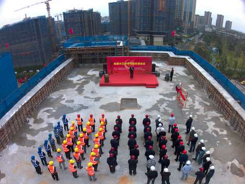 上海德华会展策划服务有限公司四川分公司总经理宋景友表示,项目部将发扬“志存高远、脚踏实地”的企业精神,严格落实“安全、质量、进度、成本”四个目标,把结构封顶当作新的起点,推进项目建设,确保工程如期履约,使其成为让建设单位满意的精品工程。